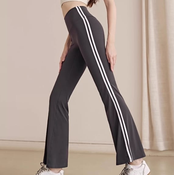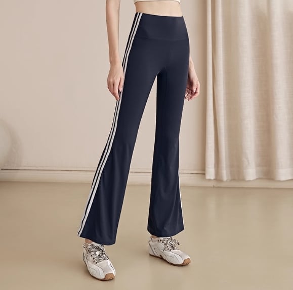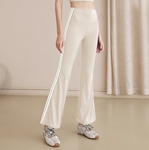 サイドラインがアクセントのフレアロングパンツ。