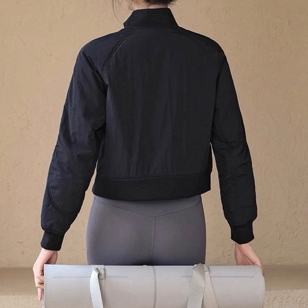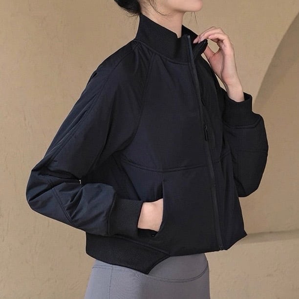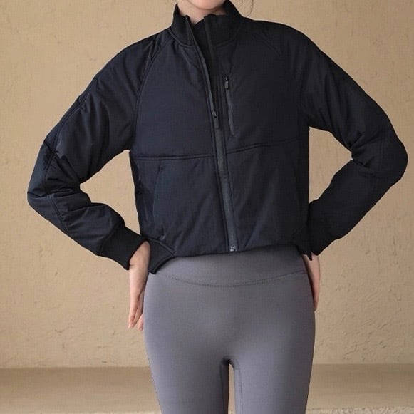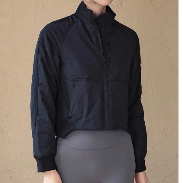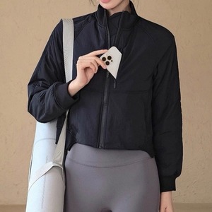 トレンドのクロップド丈で、スタイルアップ効果も期待できる長袖ジャケットです。ノーカラーのデザインは、首元をすっきりと見せ、インナーを選ばず様々なコーディネートに合わせやすいのが魅力。普段使いはもちろん、軽い運動時やアウトドアシーンにもおすすめです。