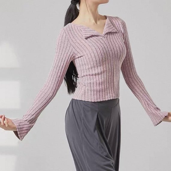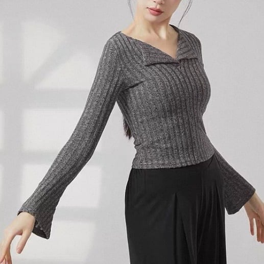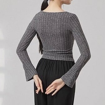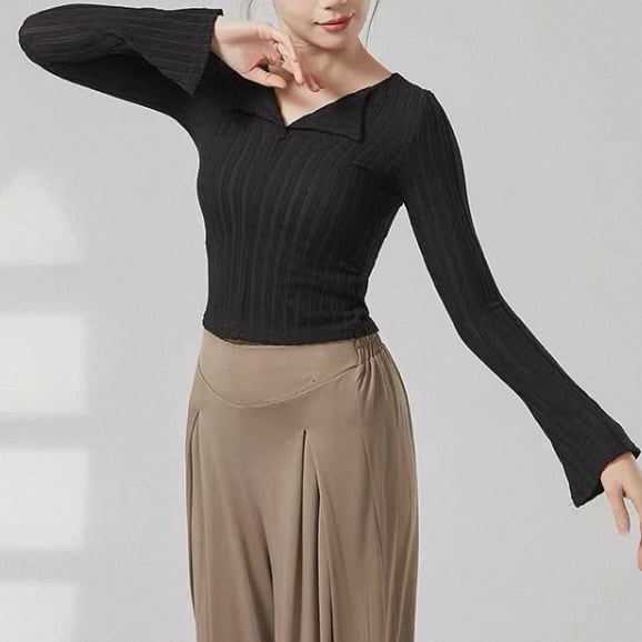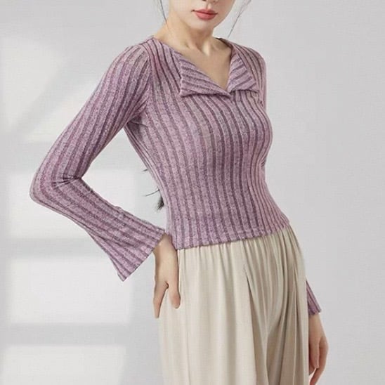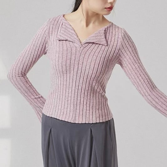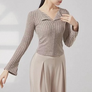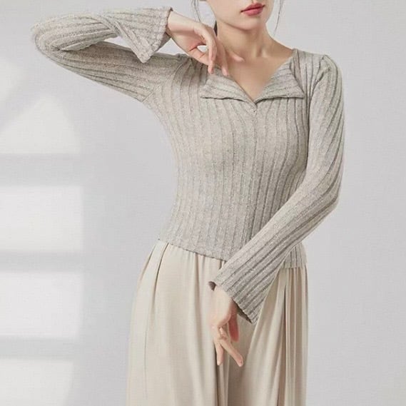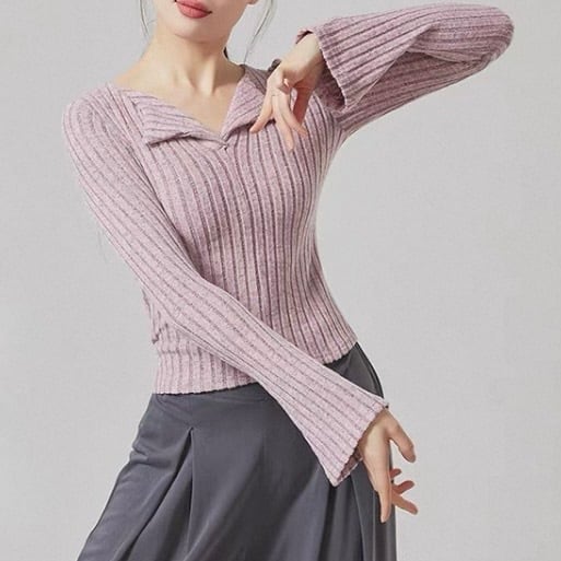 オープンカラー 長袖 ニット タイト ニットポロシャツ 5 00036