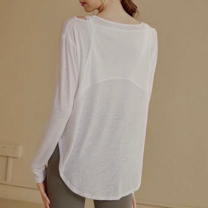 Uネックの長袖トップスは、カットアウトデザインが特徴。程よい肌見せが、普段の着こなしにさりげない抜け感をプラスしてくれます。カジュアルな普段使いはもちろん、ヨガや軽い運動など、アクティブなシーンにもおすすめです。