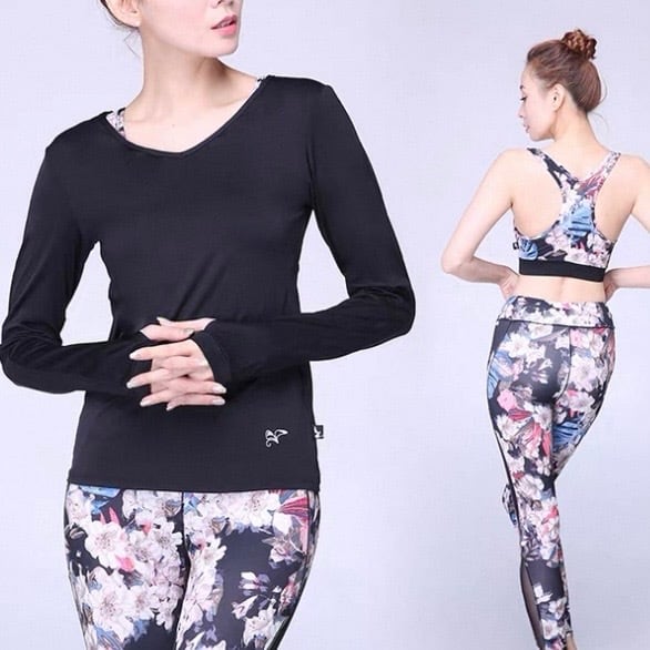 長袖トップス、ブラ、レギンスのヨガ3点セット。