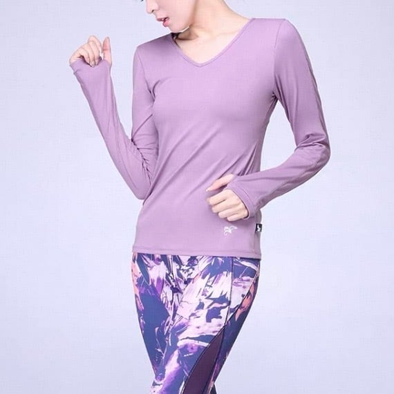 長袖トップスは、気になる部分をカバーしつつ、動きやすいデザイン。