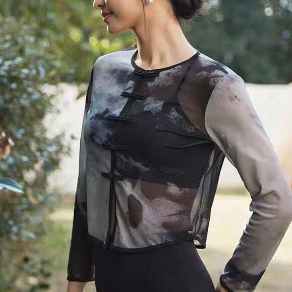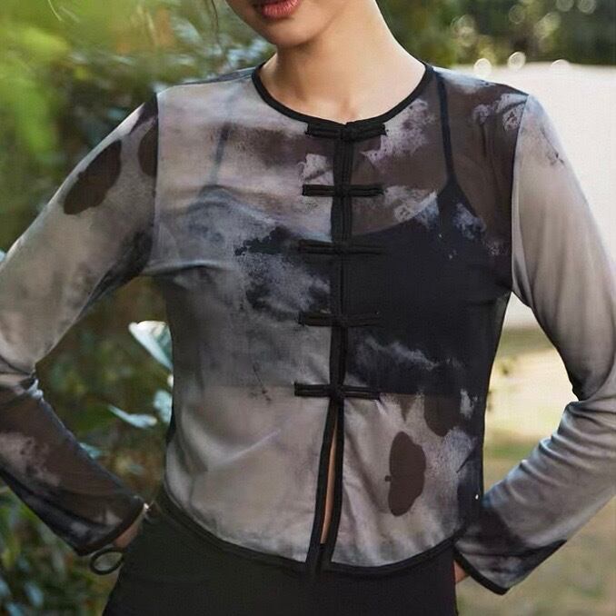 チャイナ風デザインが目を引く、長袖クロップド丈のカットソーです。カジュアルながらも個性的なスタイルを演出できます。普段使いはもちろん、ちょっとしたお出かけにもおすすめです。クロップド丈なので、ハイウエストのボトムスと合わせるとスタイルアップ効果も期待できます。