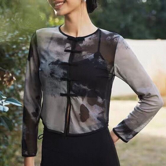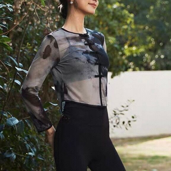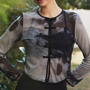 チャイナ風 長袖 クロップド丈 カットソー 1カラー 00059