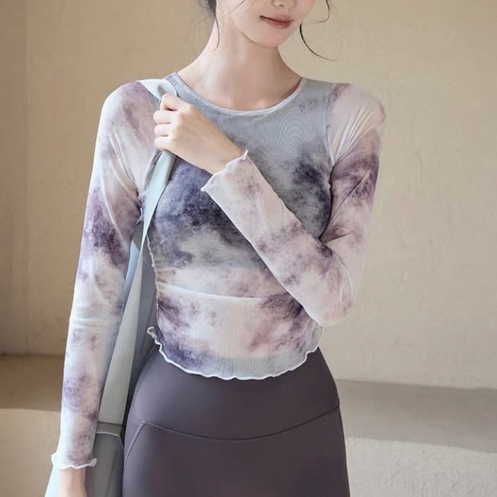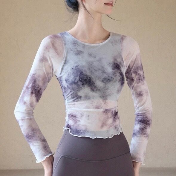 長袖 透け感クルーネック ショート丈 トップス 1カラー 00063