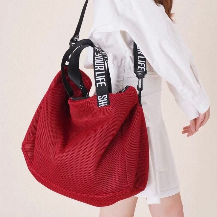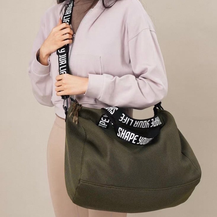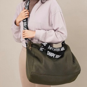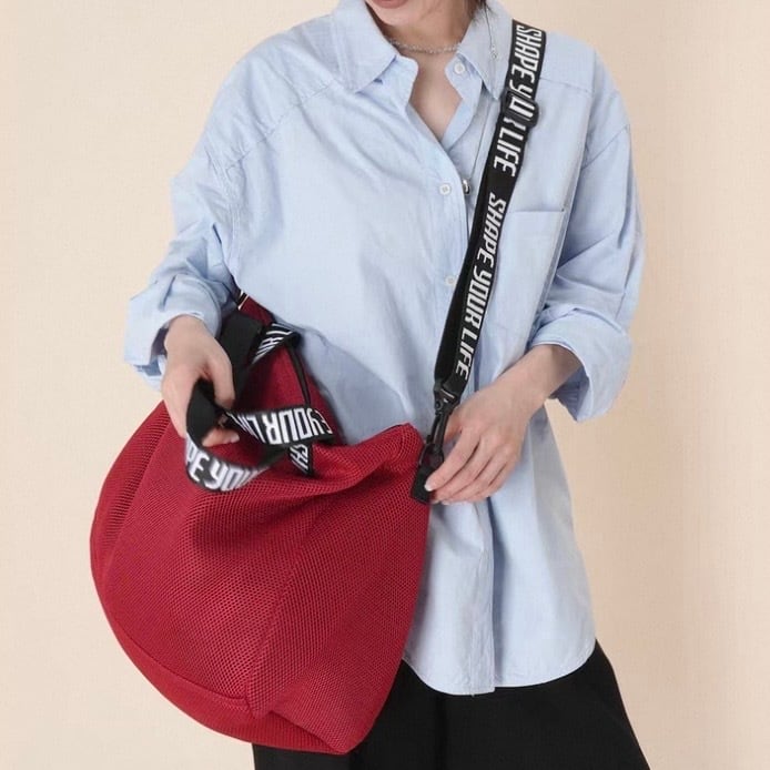普段使いにぴったりの、カジュアルなワンショルダーバッグです。ロゴ入りのストラップがアクセント。ちょっとしたお出かけや、アクティブなシーンにもおすすめです。