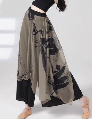 透け感のある素材を重ねた、デザイン性の高いミモレ丈パンツです。無地トップスと合わせるだけで、こなれ感のあるスタイリングが完成。動きやすく、快適な着心地なので、デイリーユースに最適です。ちょっとしたお出かけにもおすすめです。
