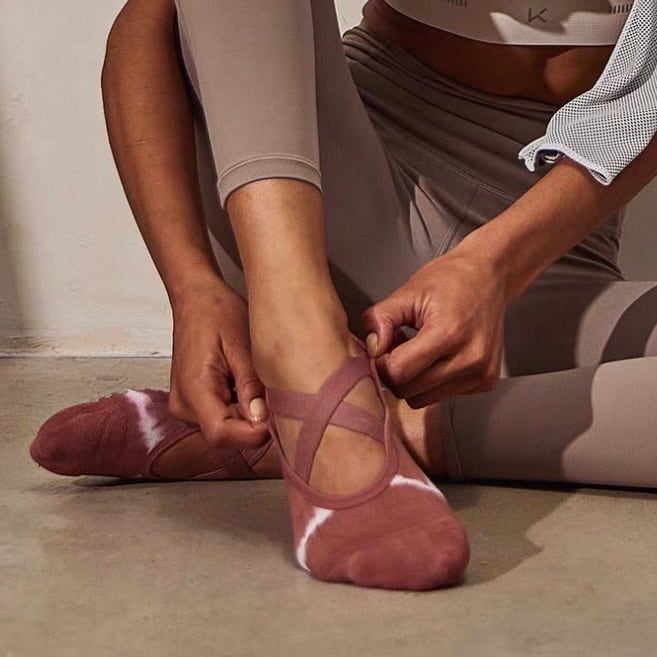 ストラップ付きのショート丈ソックスで、トレーニングをより快適に。足にフィットするデザインで、激しい動きでもずれにくく、集中力をキープできます。ヨガやピラティス、その他さまざまなエクササイズにおすすめです。