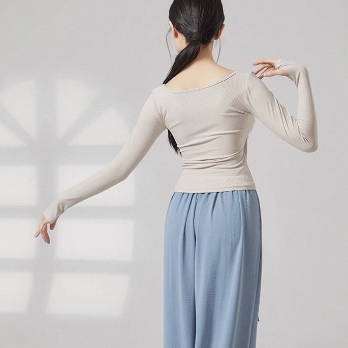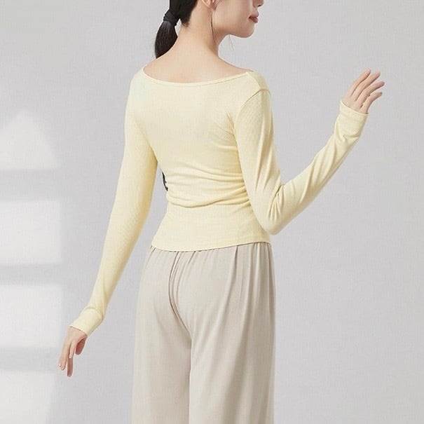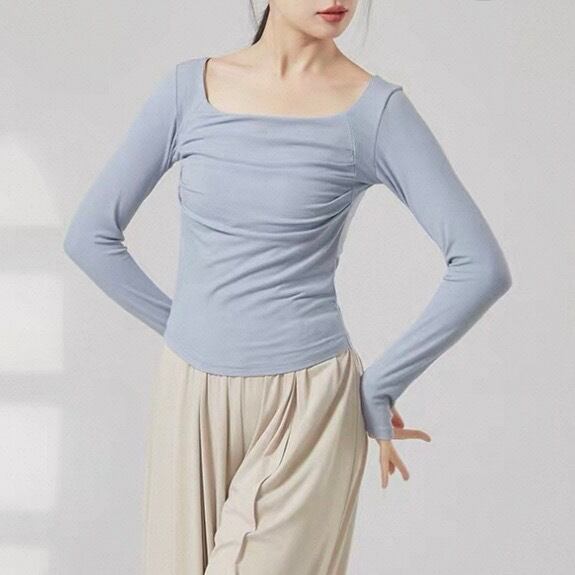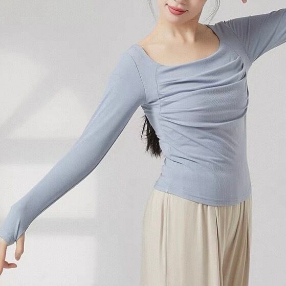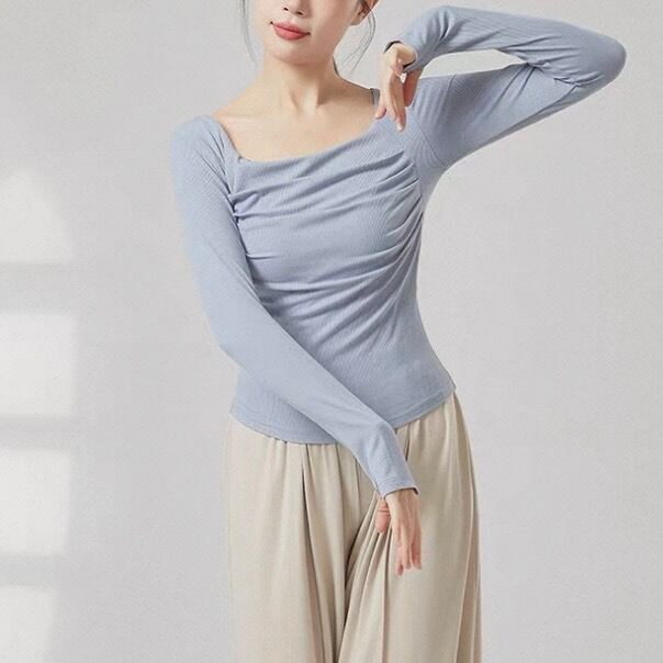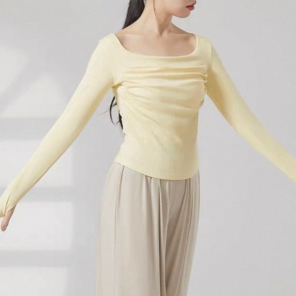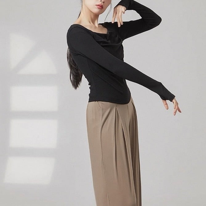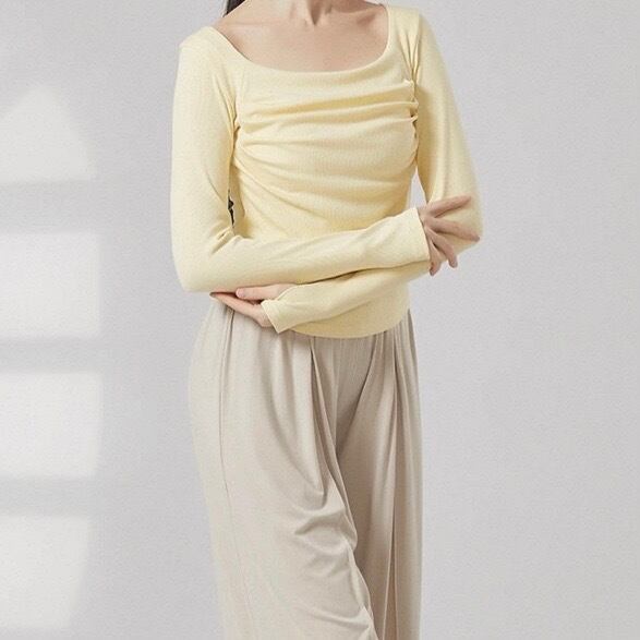 リブ編みの縦ラインが、美しいシルエットを演出する長袖カットソーです。ドレープが加わることで、シンプルなデザインに動きと表情が生まれ、洗練された印象を与えます。普段使いはもちろん、少しドレッシーな場面にも活躍するでしょう。