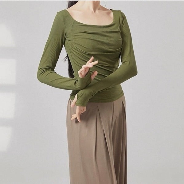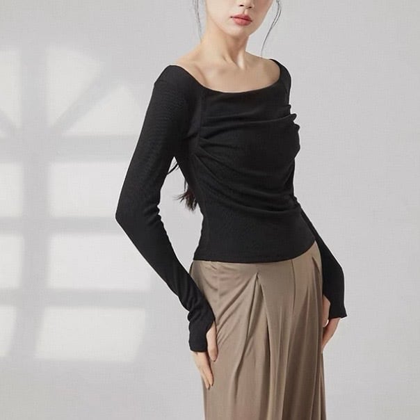 ドレープ 長袖 リブ編み カットソー 6カラー 00090