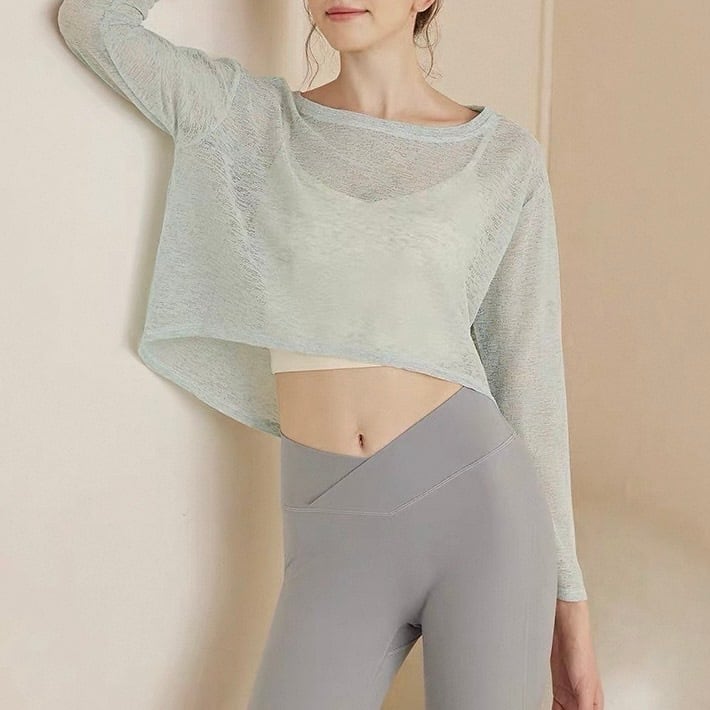 トレンドのシアー素材を使用した、長袖短丈トップスです。程よい透け感で、インナーとのレイヤードスタイルを楽しめます。ラウンドネックのデザインが、女性らしい印象を与えます。カジュアルな着こなしから、きれいめスタイルまで幅広く活躍します。