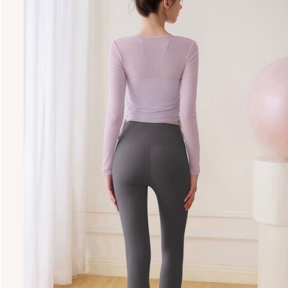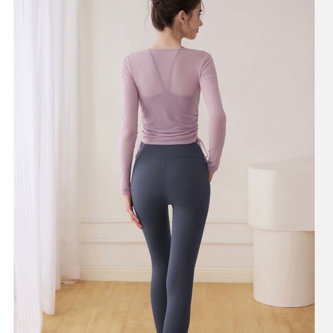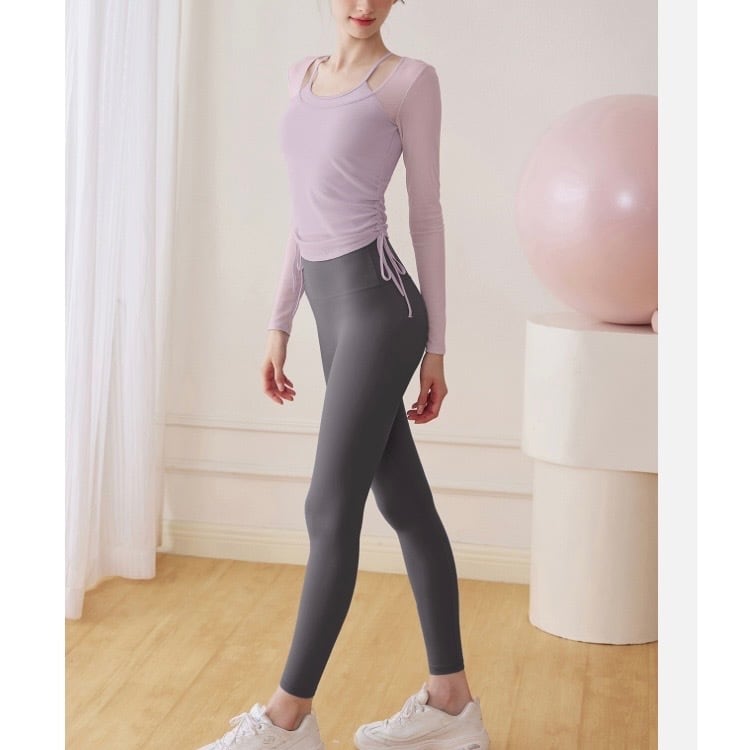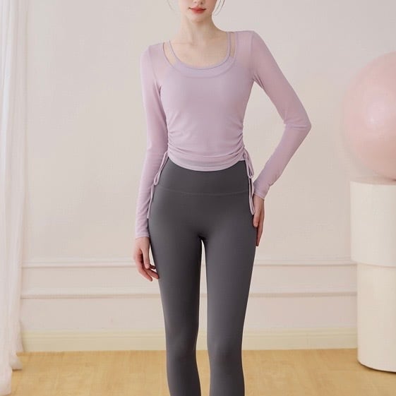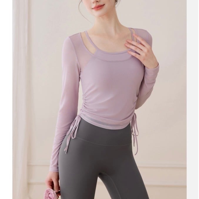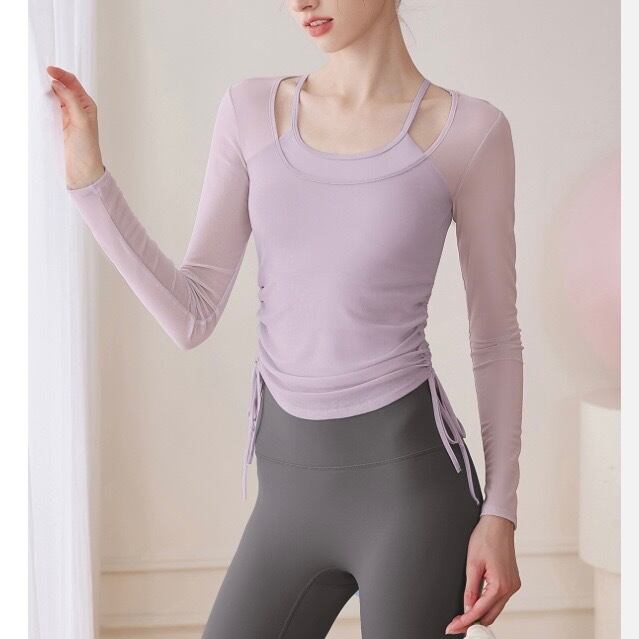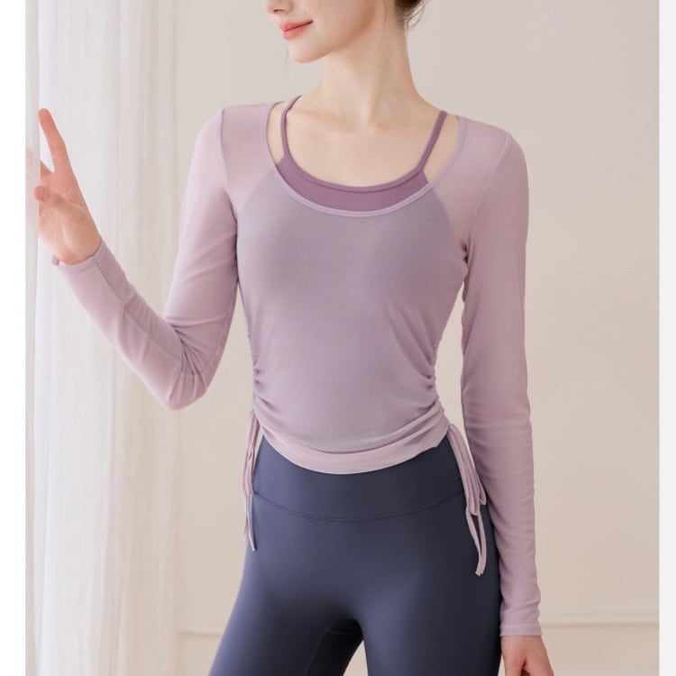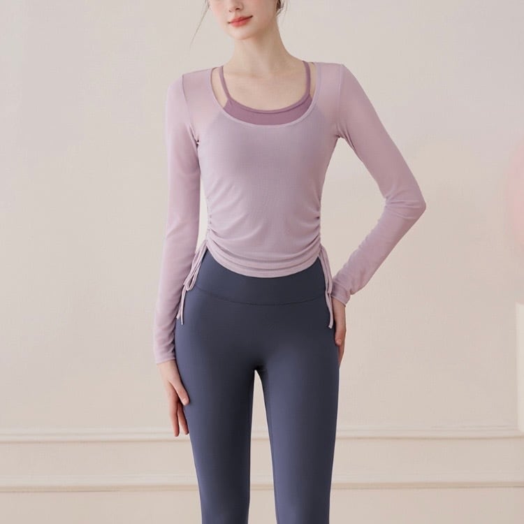 ドローストリングがポイントの長袖シアーカットソーとタンクトップのセットです。