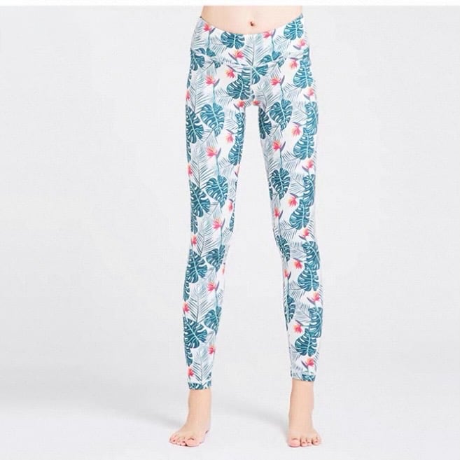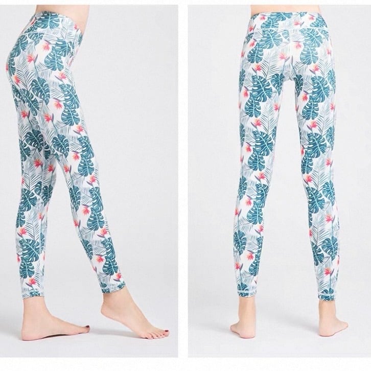 爽やかなリーフプリントが目を引くレギンス。フルレングスなので、ヨガやウォーキングなどのアクティブシーンはもちろん、普段使いにもおすすめです。レギュラーライズで快適な穿き心地を提供します。