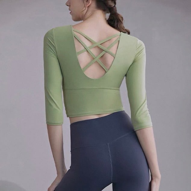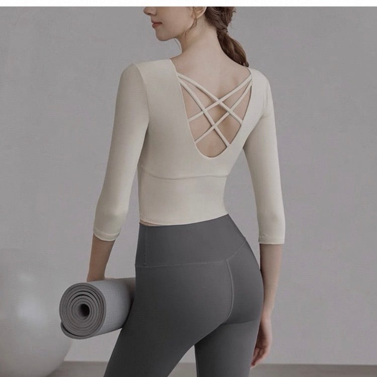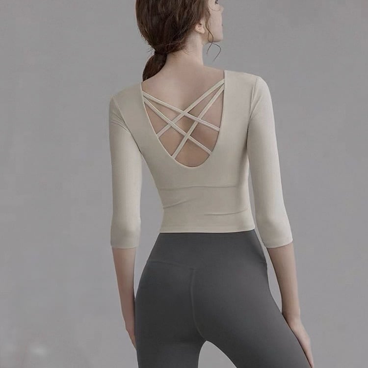 バックストラップ 七分袖 クロップド カットソー 3カラー 00139