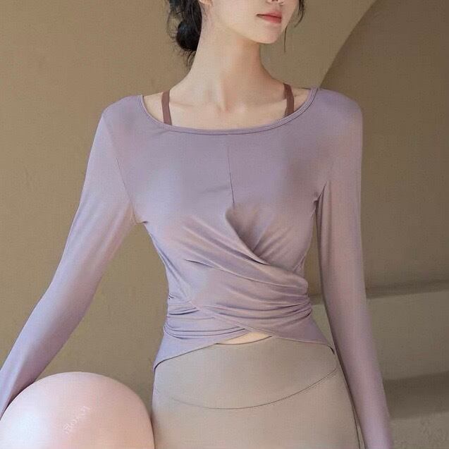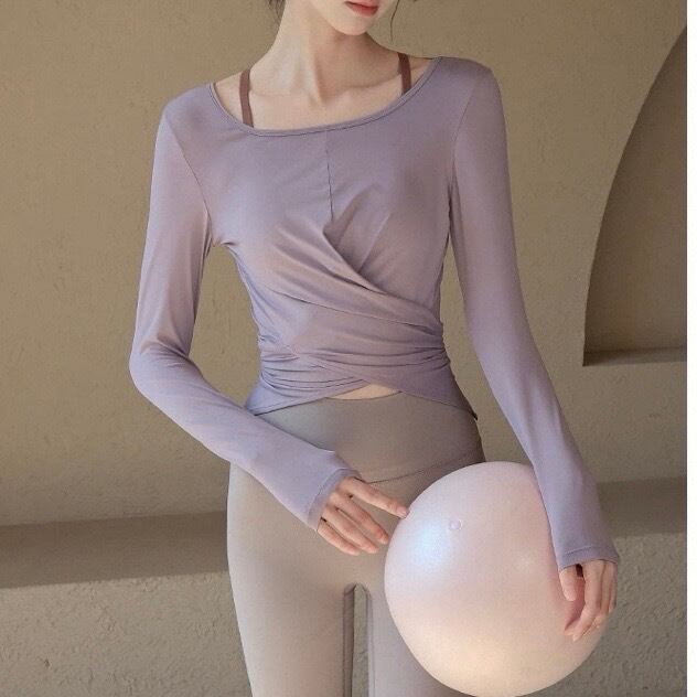 フロントのクロスデザインが目を引く長袖カットソー。短めの丈感なので、ハイウエストのボトムスと合わせるとスタイルアップ効果も期待できます。カジュアルな普段使いはもちろん、ヨガやピラティスなどのアクティブなシーンにもおすすめです。