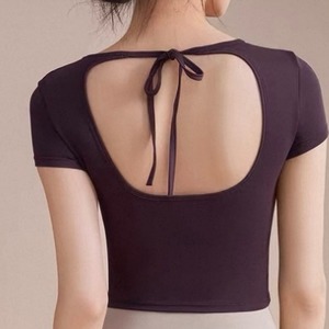 シンプルなシルエットに、遊び心をプラス。ショート丈半袖Tシャツは、カジュアルながらも女性らしさを引き立てるアイテムです。背中のリボンは調整可能なので、お好みのフィット感で着用いただけます。
